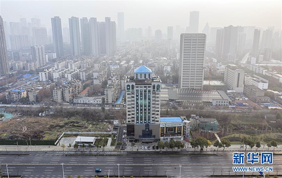 这是2月3日在武汉市拍摄的由一家大型酒店改为的集中隔离观察点(中),这个隔离点周围十分空旷。新华社记者 才扬 摄