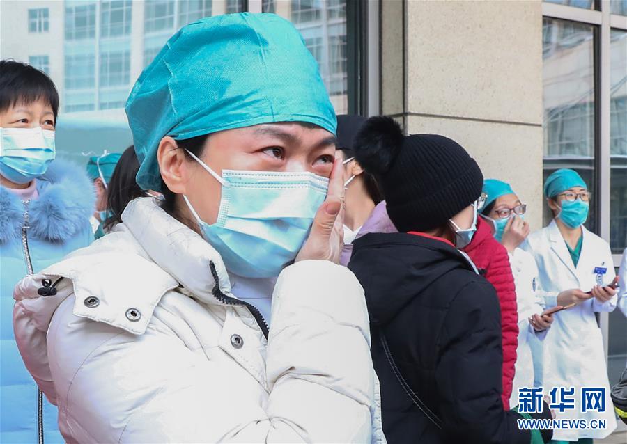 2月6日,一名北京大学国际医院医护人员在与医疗队告别时抹去眼泪。 当日,由20名北京大学国际医院医护专家组成的支援湖北抗疫国家医疗队,乘坐火车驰援湖北。这支医疗队由呼吸与危重症医学科、急诊科、感染疾病科、麻醉科、胸外科等多个科室的8名医生、12名护士组成。当日12时40分接到国家卫健委正式任务通知后,北京大学国际医院迅速部署应急医疗队人员选派和后勤物资保障。短短3小时之后,一支以党员为主的20人骨干团队迅速集结完毕,整装待发。 新华社记者 张玉薇 摄