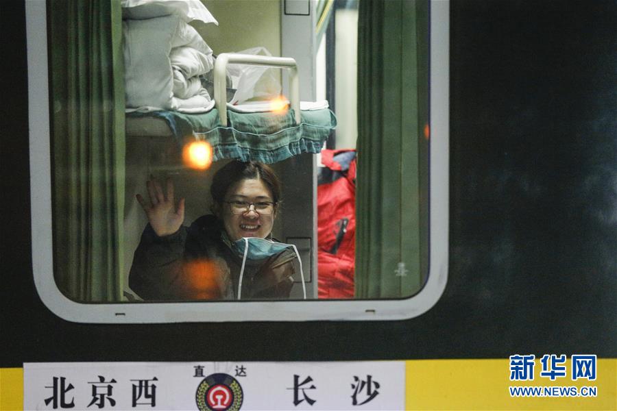 2月6日,一名北京大学国际医院医疗队队员在北京西站的列车上挥手告别。 当日,由20名北京大学国际医院医护专家组成的支援湖北抗疫国家医疗队,乘坐火车驰援湖北。这支医疗队由呼吸与危重症医学科、急诊科、感染疾病科、麻醉科、胸外科等多个科室的8名医生、12名护士组成。当日12时40分接到国家卫健委正式任务通知后,北京大学国际医院迅速部署应急医疗队人员选派和后勤物资保障。短短3小时之后,一支以党员为主的20人骨干团队迅速集结完毕,整装待发。 新华社记者 张玉薇 摄