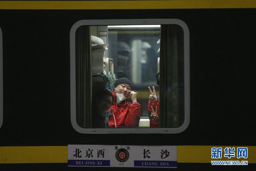 2月6日,北京大学国际医院医疗队队员在北京西站的列车上与同事告别。 当日,由20名北京大学国际医院医护专家组成的支援湖北抗疫国家医疗队,乘坐火车驰援湖北。这支医疗队由呼吸与危重症医学科、急诊科、感染疾病科、麻醉科、胸外科等多个科室的8名医生、12名护士组成。当日12时40分接到国家卫健委正式任务通知后,北京大学国际医院迅速部署应急医疗队人员选派和后勤物资保障。短短3小时之后,一支以党员为主的20人骨干团队迅速集结完毕,整装待发。 新华社记者 张玉薇 摄