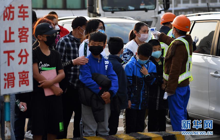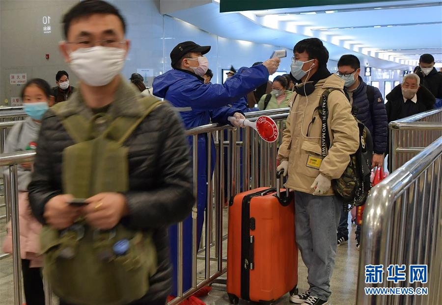 2月6日,海口秀英港轮渡码头的工作人员为登船乘客测量体温。 琼州海峡是进出海南岛的大通道,新型冠状病毒感染的肺炎疫情防控工作启动以来,海南省联合广东省,双双将防控关口前移。海南将关口前移至广东省湛江市,派驻160余名多部门联合防疫人员,设立4个防控点和一个留观点。此外,海南省还在过海轮渡上通过登船前体温检测、船舶消毒、设立隔离室等多种措施,做好疫情防控工作。 新华社记者 郭程 摄