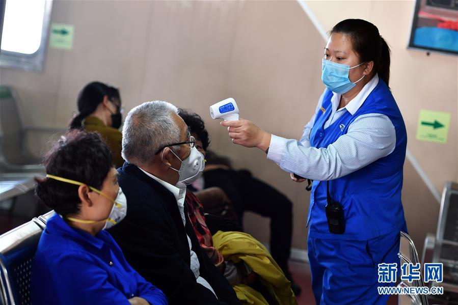 2月6日,在从海口驶往湛江的海口六号客滚轮上,工作人员为乘客测量体温。 琼州海峡是进出海南岛的大通道,新型冠状病毒感染的肺炎疫情防控工作启动以来,海南省联合广东省,双双将防控关口前移。海南将关口前移至广东省湛江市,派驻160余名多部门联合防疫人员,设立4个防控点和一个留观点。此外,海南省还在过海轮渡上通过登船前体温检测、船舶消毒、设立隔离室等多种措施,做好疫情防控工作。 新华社记者 郭程 摄