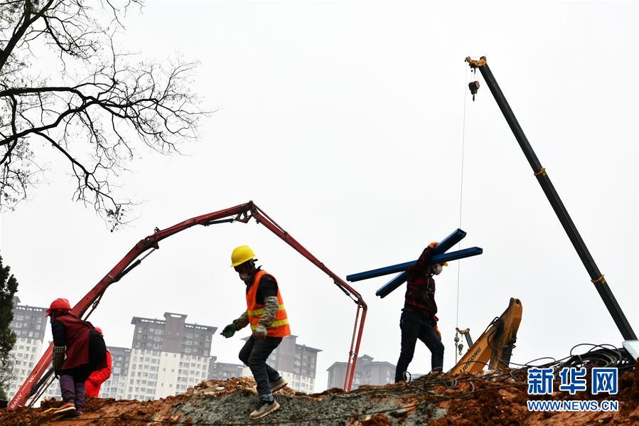工人在贵阳市公共卫生救治中心将军山院区项目现场施工(2月5日摄)。 1月27日开工建设的贵阳市公共卫生救治中心将军山院区项目建设正有序推进。目前,该项目基建、装配式建筑、供水、供电、供气、环保等均已全面进场并同步施工。 该项目占地面积3.2万平方米,实施旧院区改造和新院区建设,规划建成后共有491张床位。项目参照武汉市火神山医院和雷神山医院设计,以装配式集装箱为组成单元,一期项目计划于2月8日投入使用,二、三期计划2月20日全部建成。 新华社记者 杨文斌 摄