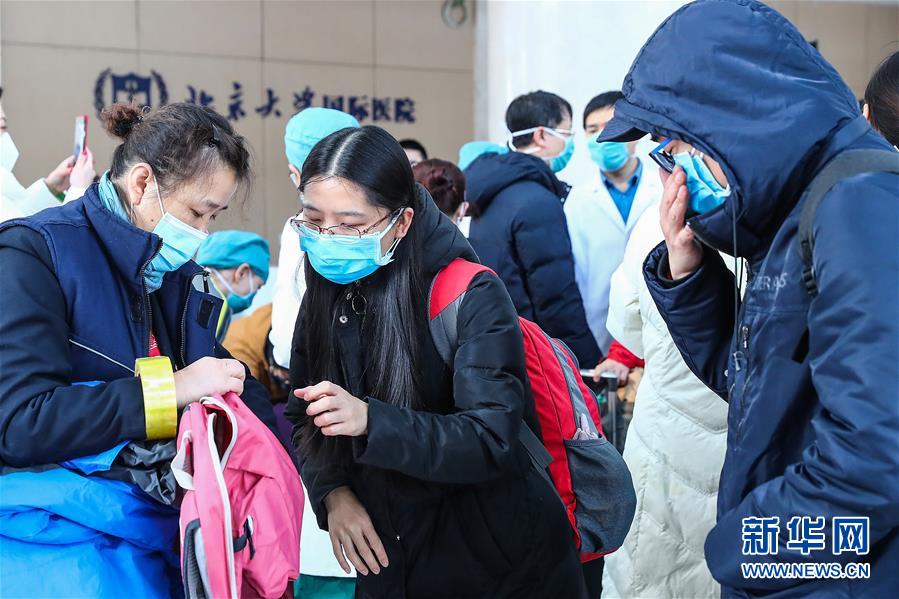 2月6日,北京大学国际医院的付雪莹(中)出发前核对携带的物资,丈夫张立朋一旁陪伴。 当日,北京大学国际医院支援湖北抗疫国家医疗队出征武汉。来自北京大学国际医院急诊科的医生付雪莹是支援湖北抗疫国家医疗队的一员,2019年刚领取结婚证。付雪莹的丈夫张立朋是她的同行。受新型冠状病毒感染的肺炎疫情影响,原定于正月初四的“出阁宴”为避免交叉感染取消了,婚礼也推迟到疫情结束后。她说:“我先生也是医生,我们有责任做任何我们能做的。”很快,张立朋也将前往抗“疫”一线工作,付雪莹说:我们将一起并肩战斗。 新华社记者 张玉薇 摄
