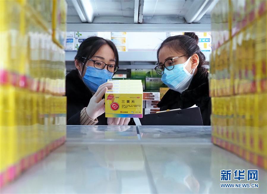 2月6日,山东无棣县市场监督管理局执法人员在无棣一家连锁药店对药品进行监督抽检。 在新型冠状病毒感染的肺炎疫情防控过程中,山东省各地加大对口罩、消毒水、抗病毒类药品等医药用品的市场监管,严厉打击疫情期间哄抬物价、制假售假等违法行为。 新华社发(陈子庆 摄)