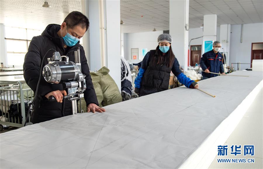 2月6日,在邯郸市复兴区一家防护服生产企业,工作人员在赶制防护服。 连日来,为助力抗击新型冠状病毒感染的肺炎疫情,河北省邯郸市复兴区防护服生产企业开足马力生产,全力保障市场供应。 新华社发(董彦斌 摄)