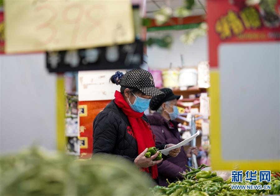2月6日,汪应卉在超市内按照福生路社区居家隔离人员提出的需求清单采购生活物资。新华社记者 刘潺 摄