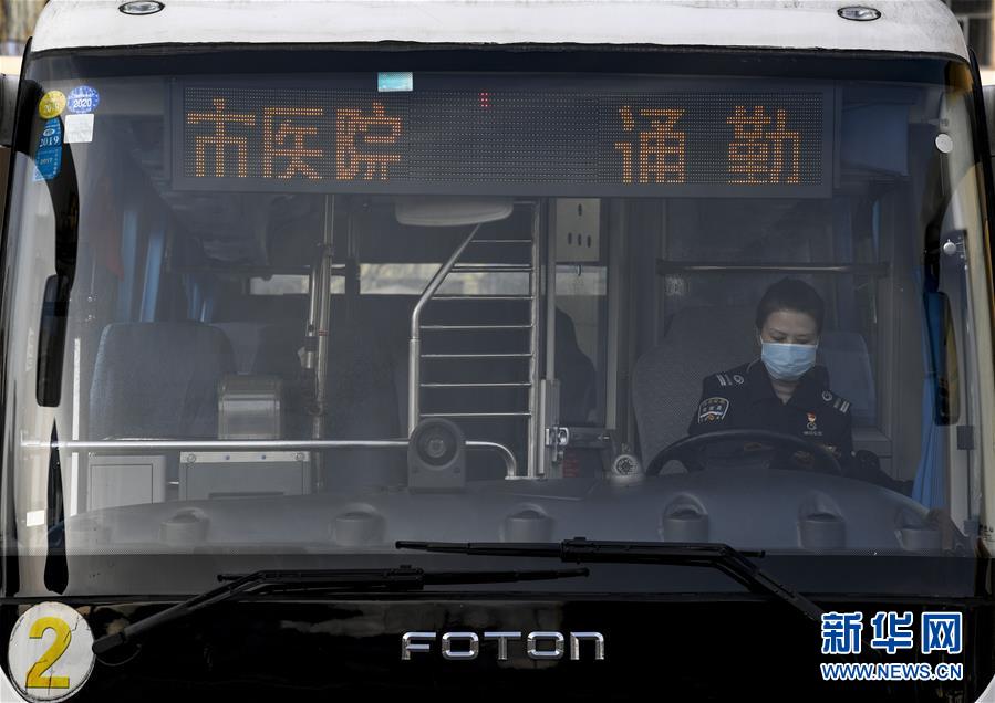 2月6日,陈丽萍查看车辆仪表信息,准备发车接送医护人员下班。新华社记者 冯开华 摄