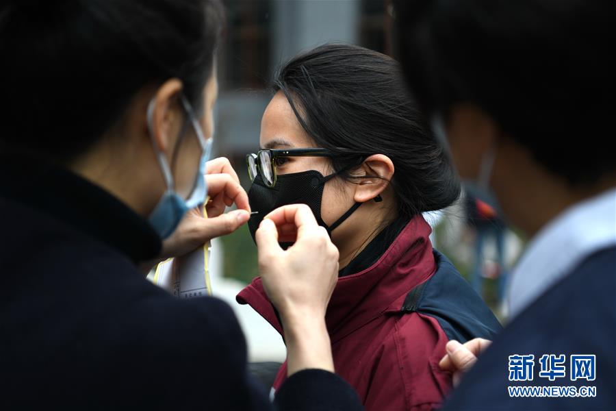 2月7日,在四川大学华西医院,一名医疗队队员出征前摘掉耳钉。 当日,四川省第五批援助湖北医疗队出征。四川大学华西医院共派出131人的医疗队驰援武汉,作为国家支援湖北抗疫医疗队赴武汉开展救治工作。 新华社发(王曦 摄)
