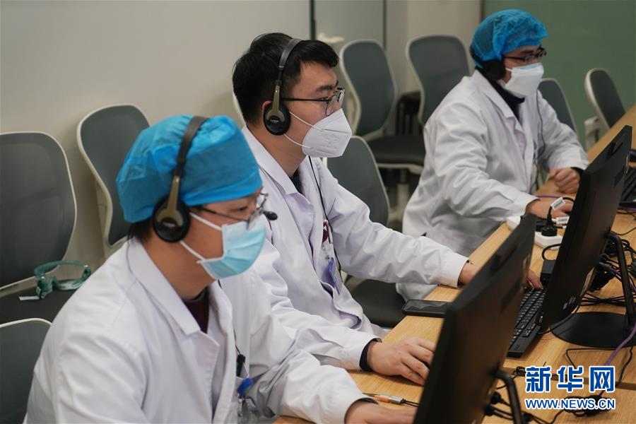 2月7日,在江苏省人民医院互联网医院办公室,医生在对患者进行网络问诊。 新华社记者 季春鹏 摄