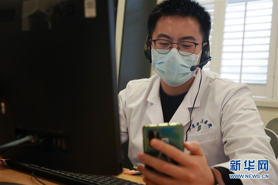 2月7日,在江苏省人民医院互联网医院办公室,一名心血管科的医生在和患者交流。 新华社记者 季春鹏 摄