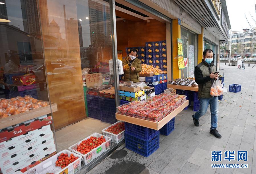 2月8日,武汉榴恋悠悠水果店利用元宵节之际搞起了促销。这是一位顾客从店里买完水果后离开。新华社记者 王毓国 摄