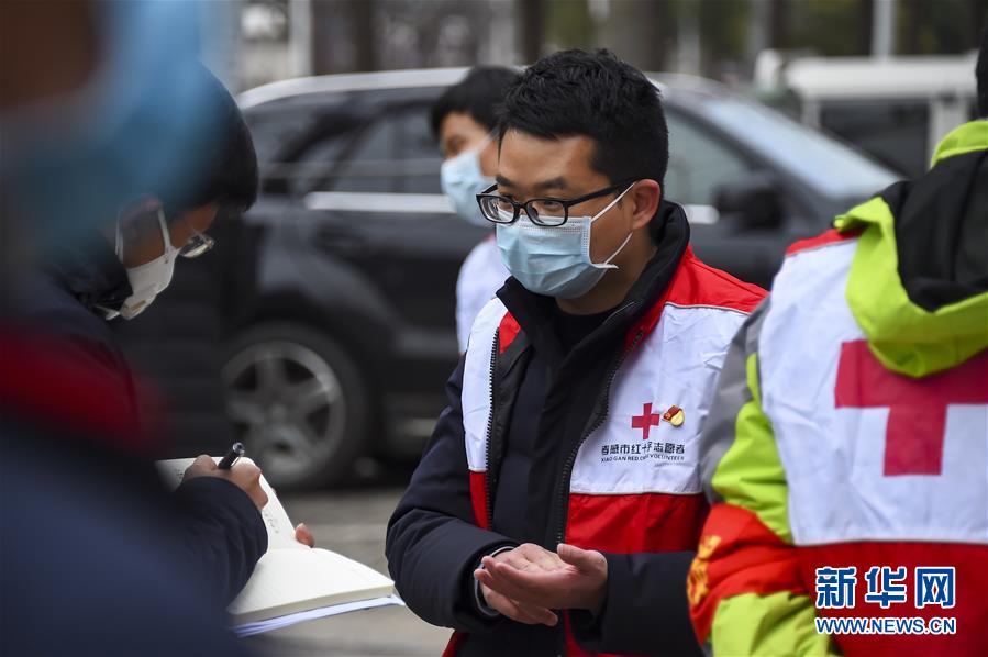 2月7日,在湖北省应城市,参与疫情防控的志愿者接受记者采访。新华社记者 胡虎虎 摄