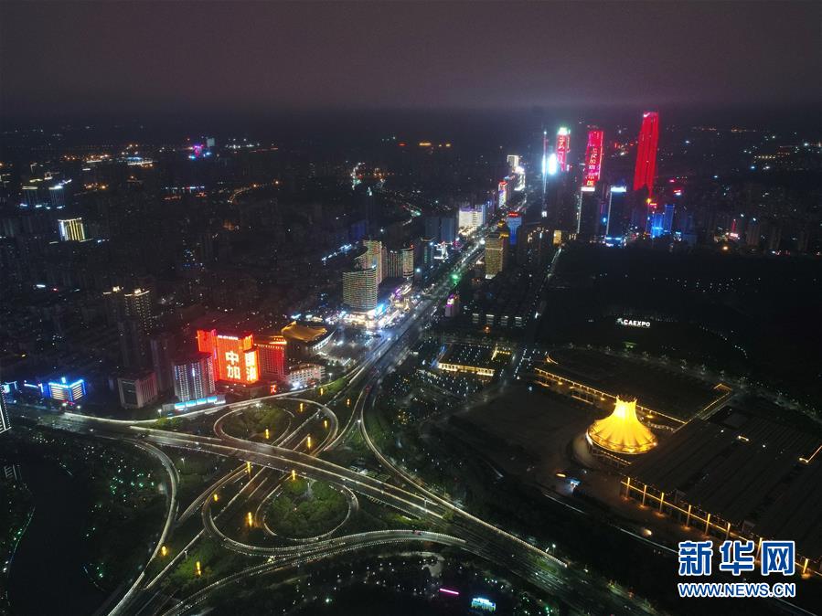 2月8日,广西南宁部分高层建筑物亮起“武汉加油”“中国加油”字样(无人机照片)。 2月7日至10日,广西南宁点亮景观灯为武汉加油,为中国加油。 新华社记者 周华 摄