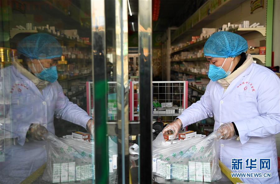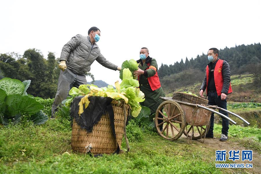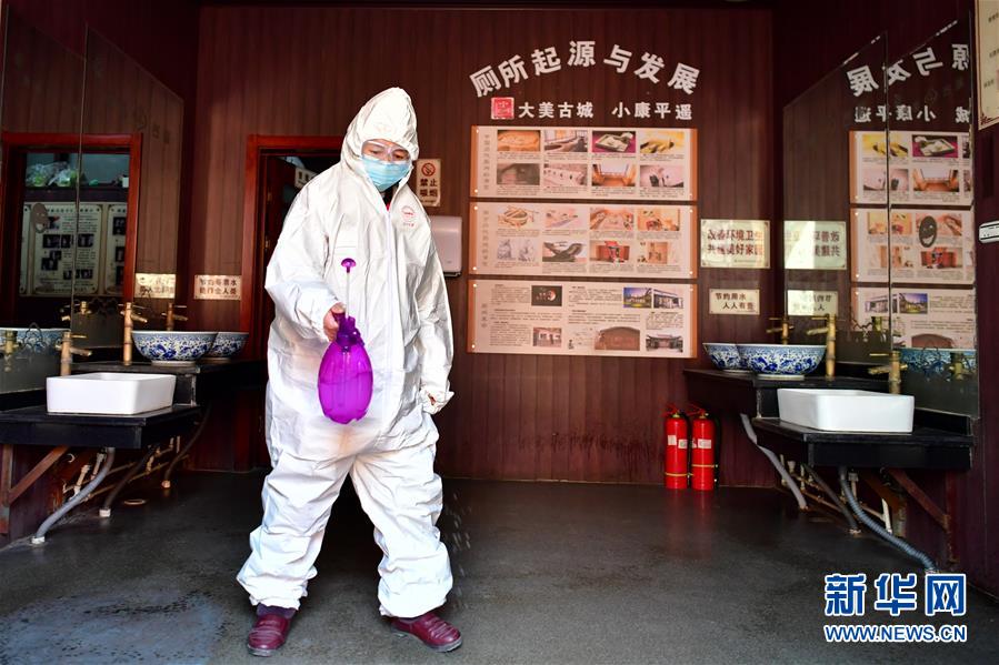 2月8日,在肥东县长临河镇,志愿者张达明(左一)和徐凌雲(左二)与社区工作人员一起,在镇上主要景点老街入口设点值守,劝返游客,对来往人员进行登记。