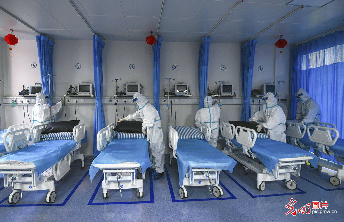 2020年1月26日晚,江西省宜春市人民医院首批驰援武汉医疗队出发。(袁剑波 摄/光明图片)