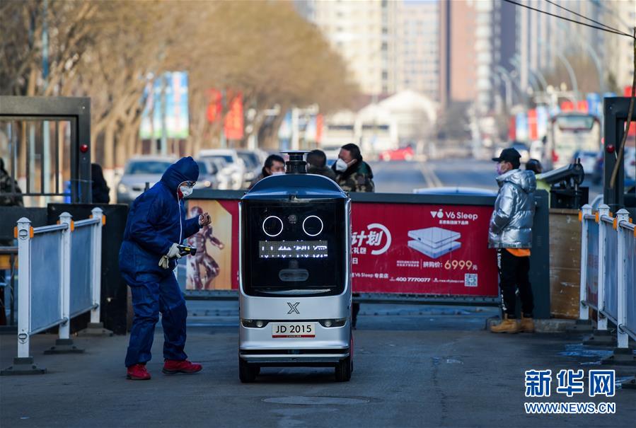 在“如意小区疫情防控临时党支部”协调下,京东物流的智能配送机器人进入小区,准备为居民配送快递(2月7日摄)。 1月28日,内蒙古呼和浩特市新城区迎新路街道如意住宅小区确诊了两例新型冠状病毒肺炎患者,随后如意小区进行了全封闭管理,并于1月29日在该小区成立“如意小区疫情防控临时党支部”,由呼和浩特市纪委监委的纪检监察干部和该小区居住的在职党员组成志愿服务队,有100余名党员加入其中。“如意小区疫情防控临时党支部”定期向居民发送口罩、消毒液等防护用品,并多方协调帮助小区居民解决日常生活困难,保证居民生活物资充足,引导和鼓励群众发挥群防群控作用。 新华社记者 连振 摄