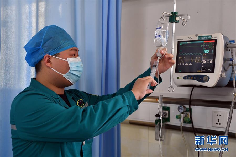 邢远方在急诊抢救室内为静脉注射的病人配药(2月9日摄)。新华社记者李嘉南摄