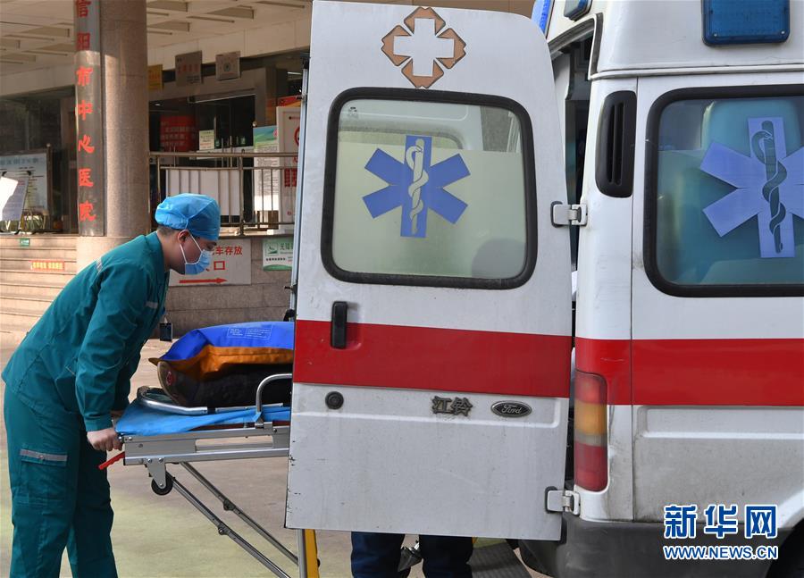 邢远方将病人抬下救护车(2月9日摄)。新华社记者李嘉南摄