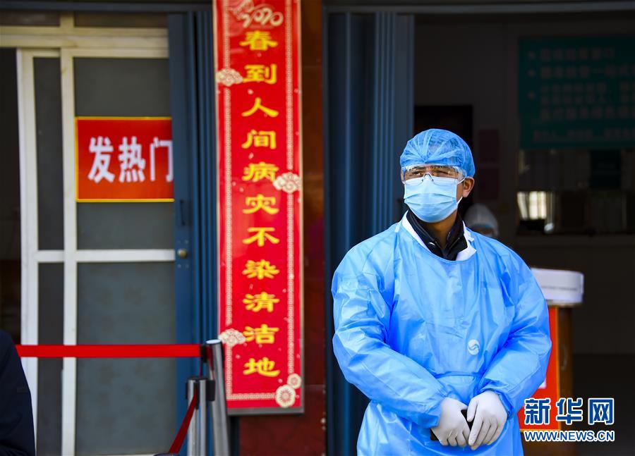 2月9日,孝感市孝南区卧龙乡卫生院副院长徐运桢在医院门口,手上拿着手机,随时准备接收“96120”平台分派来的任务信息。新华社记者 胡虎虎 摄