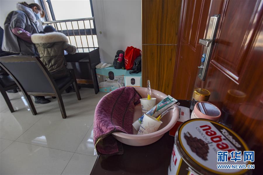 2月9日,孝南区“96120”平台话务组的工作人员在忙碌中,办公桌旁摆放着洗漱用品、方便食品。新华社记者 胡虎虎 摄