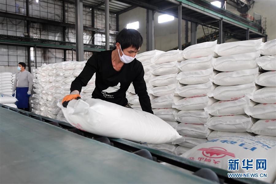 2月10日,在广西南宁糖业宾阳大桥制糖有限责任公司,工人在生产作业中。 近日,在做好防控新冠肺炎疫情工作的同时,全国许多企业开始复工复产。 新华社记者 陆波岸 摄