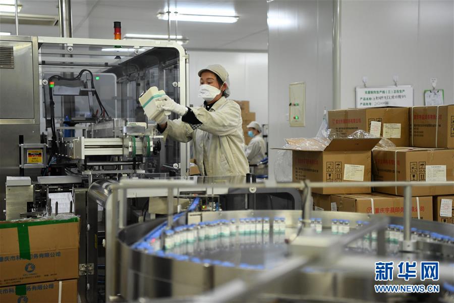 2月10日,工作人员在位于重庆市两江新区的华邦制药股份有限公司生产车间内作业。 近日,在做好防控新冠肺炎疫情工作的同时,全国许多企业开始复工复产。 新华社记者 唐奕 摄