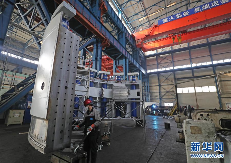 2月10日,在方大集团沈阳北方重工有限公司盾构机分厂车间,工人复工工作。 近日,在做好防控新冠肺炎疫情工作的同时,全国许多企业开始复工复产。 新华社记者 杨青 摄