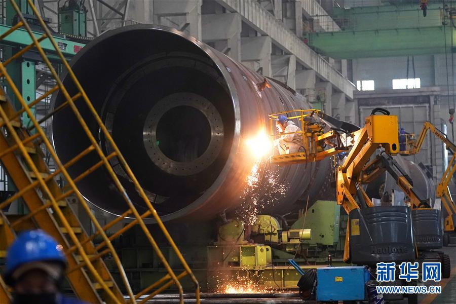 2月10日,在哈电集团哈尔滨锅炉厂有限责任公司的生产车间,工人在进行生产作业。 近日,在做好防控新冠肺炎疫情工作的同时,全国许多企业开始复工复产。 新华社记者 王建威 摄
