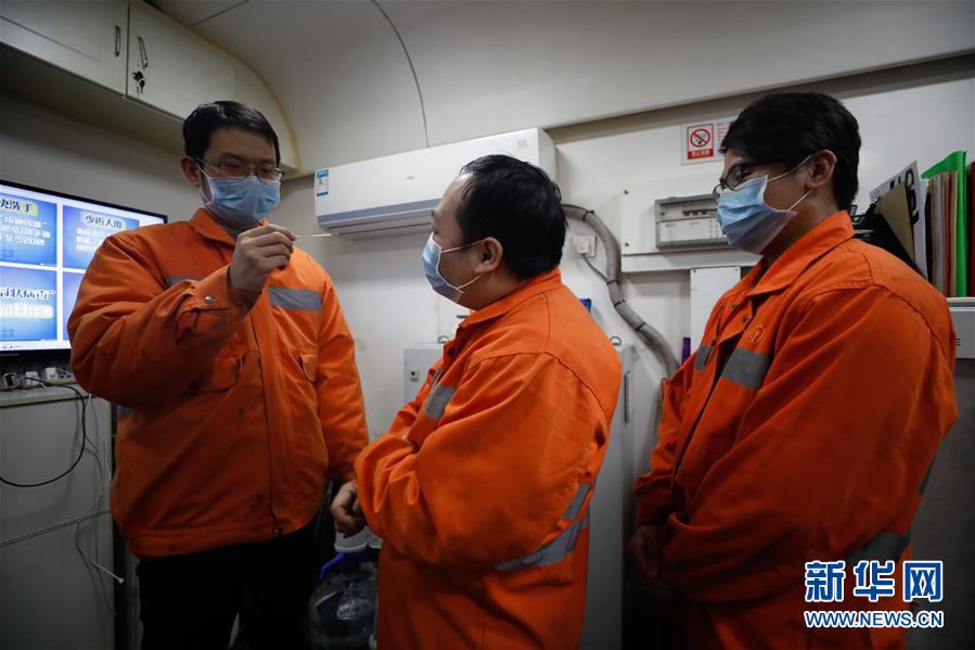 工作人员严格落实疫情防控措施,在施工作业前对作业人员进行体温检测(2月10日摄)。 随着全国各地人员陆续返岗复工,铁路部门也将陆续迎来返程客流高峰。近日,江西鹰潭工务机械段“巡检大篷车”上的工作人员开始了疫情防控特殊时段的忙碌生活。江西鹰潭工务机械段主要负责赣、闽两省普速和高速铁路铁轨的探伤巡检工作,由于常年在外作业,工作人员在由火车车厢改造成的宿营车上工作,他们工作的宿营车也被称为铁路上的“巡检大篷车”。为确保疫情期间铁路运输安全,工作人员除了做好自身防护,还要克服水电短缺、远离家人等困难,他们在“巡检大篷车”上坚守岗位,全力保障旅客安全出行。 新华社记者胡晨欢摄