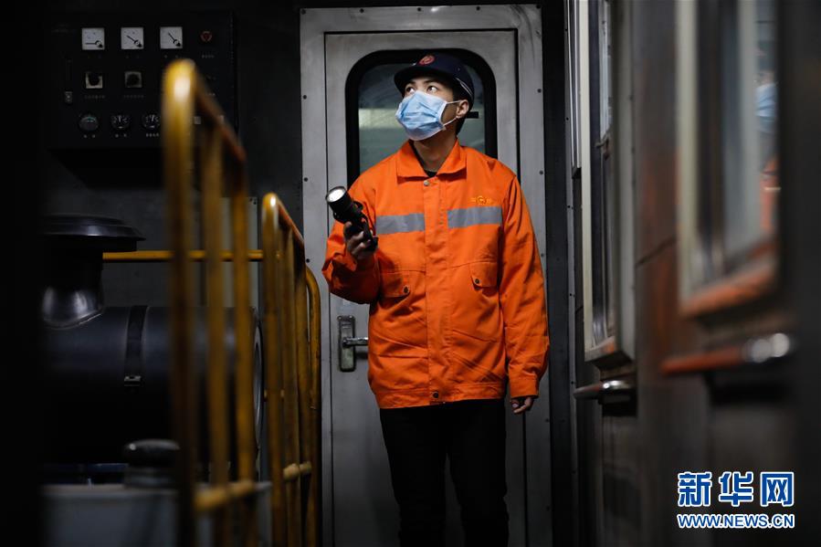 在江西上饶站,工作人员在“巡检大篷车”上巡视车辆设备(2月10日摄)。 随着全国各地人员陆续返岗复工,铁路部门也将陆续迎来返程客流高峰。近日,江西鹰潭工务机械段“巡检大篷车”上的工作人员开始了疫情防控特殊时段的忙碌生活。江西鹰潭工务机械段主要负责赣、闽两省普速和高速铁路铁轨的探伤巡检工作,由于常年在外作业,工作人员在由火车车厢改造成的宿营车上工作,他们工作的宿营车也被称为铁路上的“巡检大篷车”。为确保疫情期间铁路运输安全,工作人员除了做好自身防护,还要克服水电短缺、远离家人等困难,他们在“巡检大篷车”上坚守岗位,全力保障旅客安全出行。 新华社记者胡晨欢摄