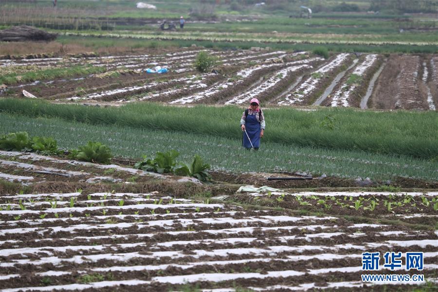 村民在南宁市江南区江西镇蔬菜基地管护蔬菜(2月10日摄)。 为保障新冠肺炎疫情期间的蔬菜供应,广西南宁市江南区江西镇村民管护种植的青椒、四季豆、豆角等蔬菜,采收生菜和香葱,用辛勤劳作,守护好“菜篮子”。 新华社记者 周华 摄