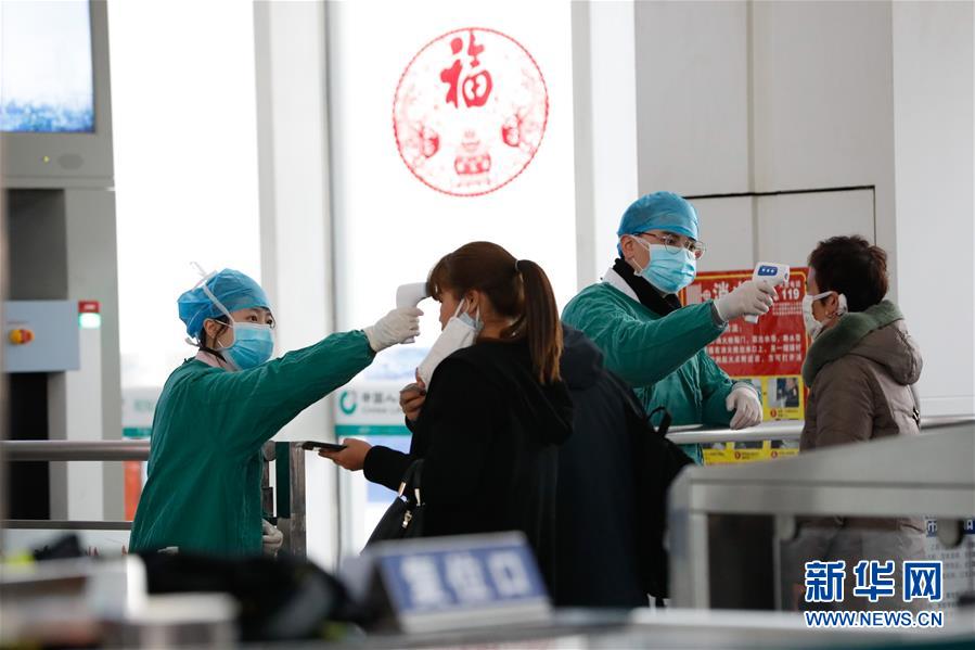 2月11日,上饶火车站工作人员为进站旅客测量体温。 随着返程客流增长,江西上饶火车站进一步加强对新冠肺炎疫情的防控,根据车次信息优化旅客候车区域、减少人员聚集,同时细致做好进出站旅客体温检测、健康信息登记和防疫宣传等工作,保障旅客安全有序出行。 新华社记者 胡晨欢 摄