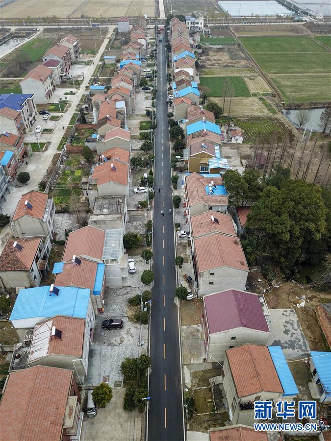 孝感市孝南区陡岗镇袁湖村的一条乡间道路(2月10日无人机拍摄)。 新华社记者胡虎虎摄