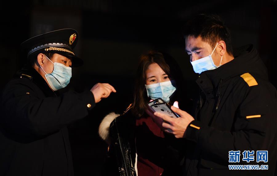 2月11日晚,在贵阳市云岩区黔灵镇茶店村新冠肺炎疫情防控值守卡点,工作人员(左一)在指导进出人员利用手机将信息录入疫情防控收集平台。 连日来,贵州省贵阳市在各居民小区和村镇出入要道设置新冠肺炎疫情防控值守卡点,不分昼夜由专人值守,负责进出人员的体温测量、行踪登记、疫情防控知识宣传等,筑牢疫情防控网,保障市民安全。 新华社记者杨文斌摄