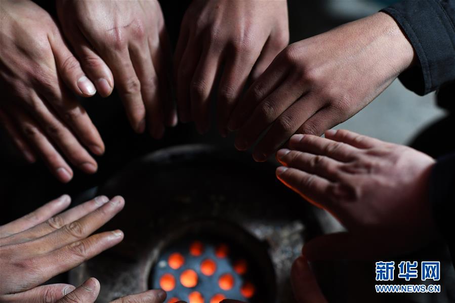 2月11日晚,工作人员在贵阳市云岩区黔灵镇茶店村新冠肺炎疫情防控值守卡点利用煤炉取暖。 连日来,贵州省贵阳市在各居民小区和村镇出入要道设置新冠肺炎疫情防控值守卡点,不分昼夜由专人值守,负责进出人员的体温测量、行踪登记、疫情防控知识宣传等,筑牢疫情防控网,保障市民安全。 新华社记者杨文斌摄