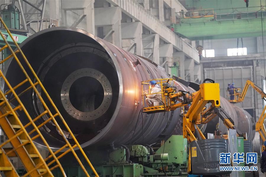 在哈电集团哈尔滨锅炉厂有限责任公司的生产车间,工人在复工首日进行生产作业(2月10日摄)。 连日来,为保障疫情期间防护物资需求和各类市场供应,保障经济稳定,黑龙江省一批企业为战“疫”陆续开工、复工,其中有些为“跨界”开工,有些为提前复工复产。 新华社记者 王建威 摄