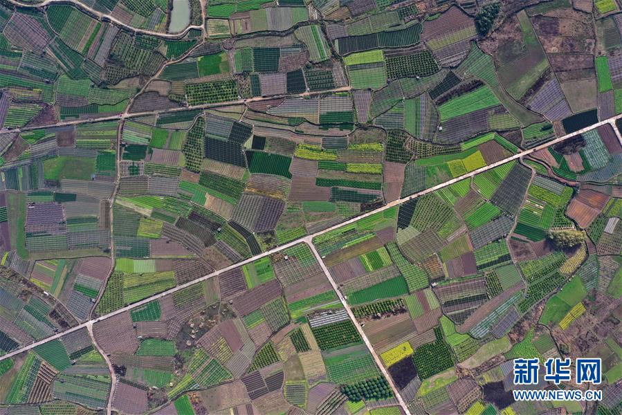 这是2月13日拍摄的灵川县大圩镇蔬菜基地(无人机照片)。 当日,广西桂林市灵川县大圩镇不少村民到蔬菜基地里开展播种、管护、采收等工作,在抓好疫情防控的同时,稳住群众的“菜篮子”。 新华社记者 黄孝邦 摄