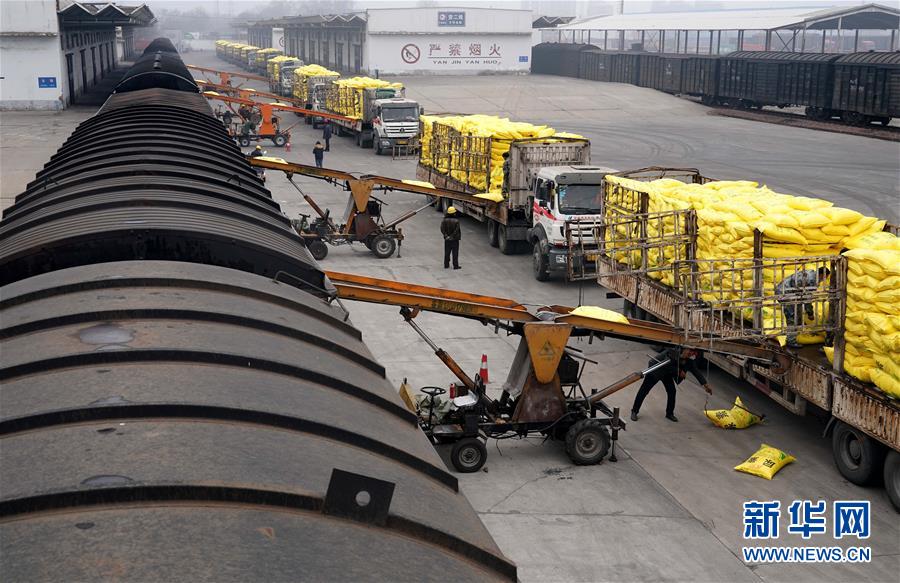 2月13日,在中国铁路郑州局集团有限公司开封车站,工作人员使用传输机装运春耕物资。 眼下正值春耕备耕时节,中国铁路郑州局集团有限公司开封车站针对当前疫情防控重点,有序组织车站货运人员复工复产,并积极与地方企业对接,密切关注企业投产和运输需求,为春耕物资开辟绿色通道,全力确保运输秩序安全稳定。2月13日,该站发送化肥、种子等春耕物资33车1980吨。 新华社记者 李安 摄