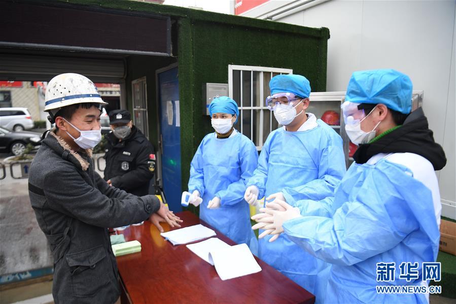 2月14日,石家庄市儿童医院医护人员在为建筑工地工人讲解正确洗手方式。 当日,石家庄市儿童医院医护人员走进位于石家庄市桥西区的一处建筑工地,为工地复工人员检测体温,宣传新冠肺炎防护知识。 新华社记者 王晓 摄