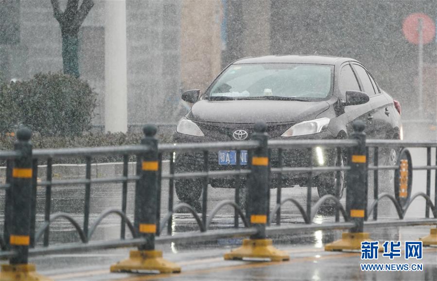 2月15日,汽车在雪中驶过街道。新华社记者 程敏 摄