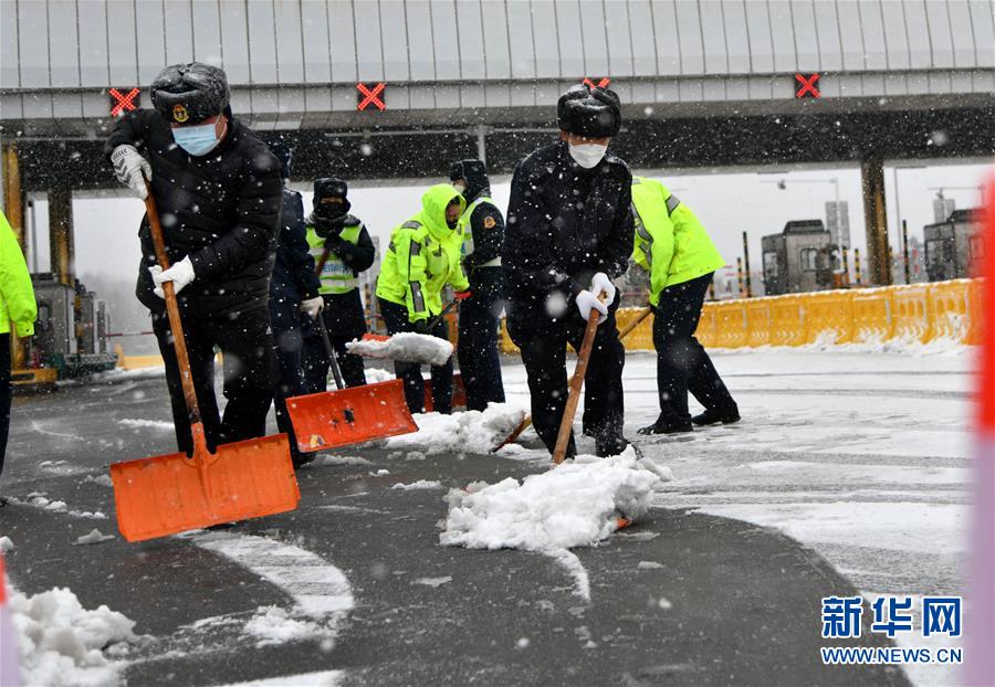 2月15日,青岛东收费站工作人员在清理道路积雪。 当日,山东省青岛市迎来降雪天气。青岛市冰雪灾害专项应急指挥部发布城市冰雪灾害黄色预警,同时启动城市冰雪灾害Ⅲ级应急响应。青岛高速各路段立即按照新冠肺炎疫情防控工作要求,在做好安全防护的前提下,调集人员、设备和物资全力开展清雪、除冰工作,确保道路安全畅通。 新华社记者 李紫恒摄