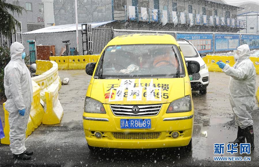 2月15日,在武汉客厅方舱医院,治愈患者乘车出院。新华社记者 才扬 摄