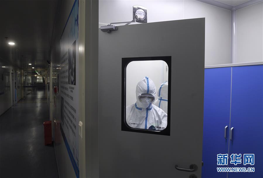 2月15日,四川国际旅行卫生保健中心(成都海关口岸门诊部)卫生检疫综合实验室检测人员完成检测后走出负压实验室。新华社记者刘坤摄