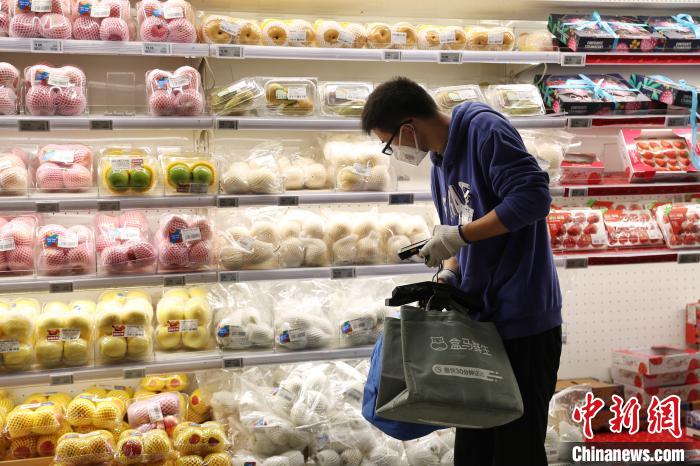 超市货架上瓜果等品种丰富。 张亨伟 摄