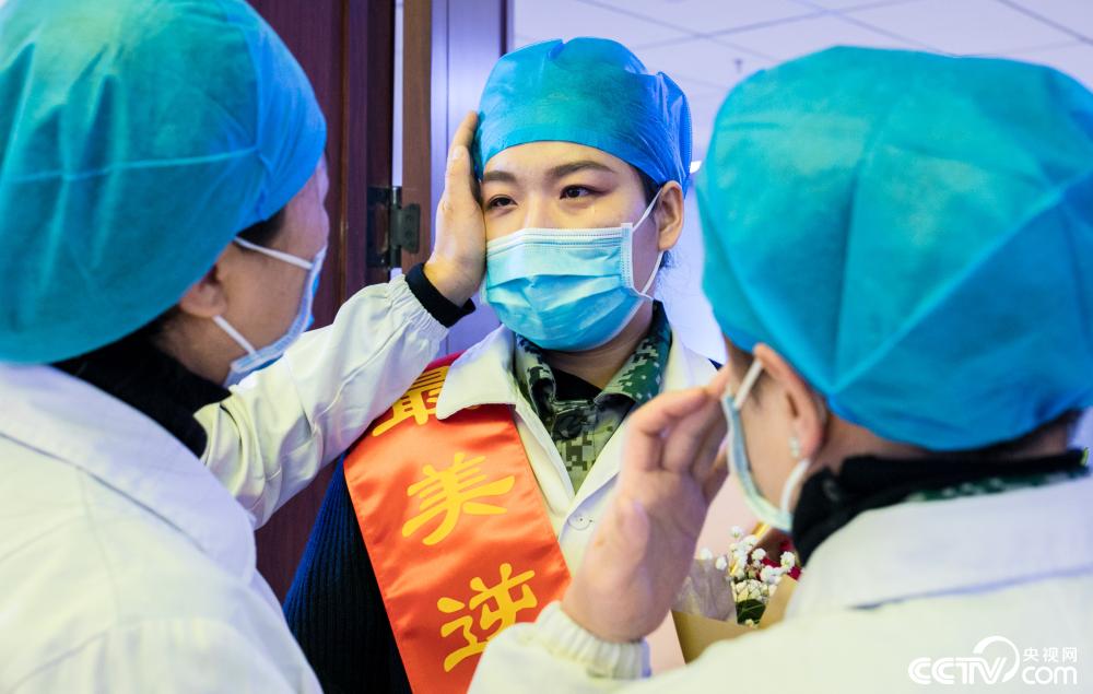 央视网消息:2020年2月16日,呼和浩特市玉泉区红十字医院支援武汉医疗队队员杨荣(右一)出征前与同事道别。当日,内蒙古呼和浩特市玉泉区红十字医院抗击新冠肺炎疫情的医疗队整装出征,支援武汉抗疫前线。该区主要负责人、队员亲属及医院同事送别抗疫战士踏上征程。据了解,医疗队抵达后将重点在疾病救治、医疗护理等方面开展救治援助工作。(丁根厚 摄影报道)
