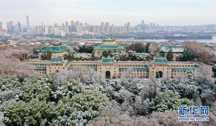这是2月16日拍摄的雪后的武汉大学樱园和老图书馆(无人机照片)。 2月15日,武汉迎来一场降雪。2月16日清晨,雪后初霁,阳光洒在武汉大学的建筑群上,景色如画。 新华社记者 陈晔华 摄