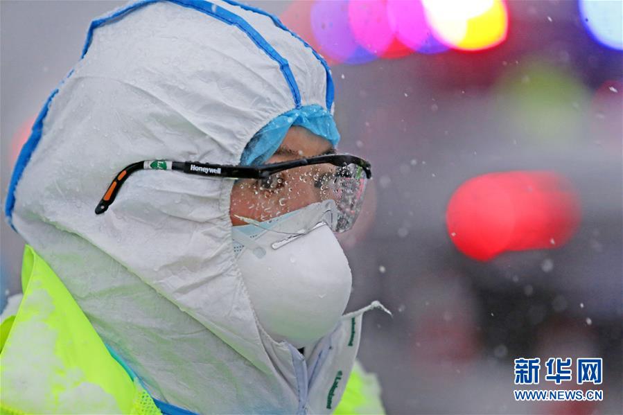 2月15日,在江苏连云港市港城大道卡口,防控人员冒着风雪坚守在防控疫情一线。 2月15日,江苏部分地区出现风雪天气。在道路各卡口、居民小区门口等地,公安、卫生、社区的防控工作人员冒着风雪坚守在防控疫情第一线,对进出车辆及人员进行排查、体温检测、信息登记,筑起防控疫情的坚实防线。 新华社发(王健民 摄)