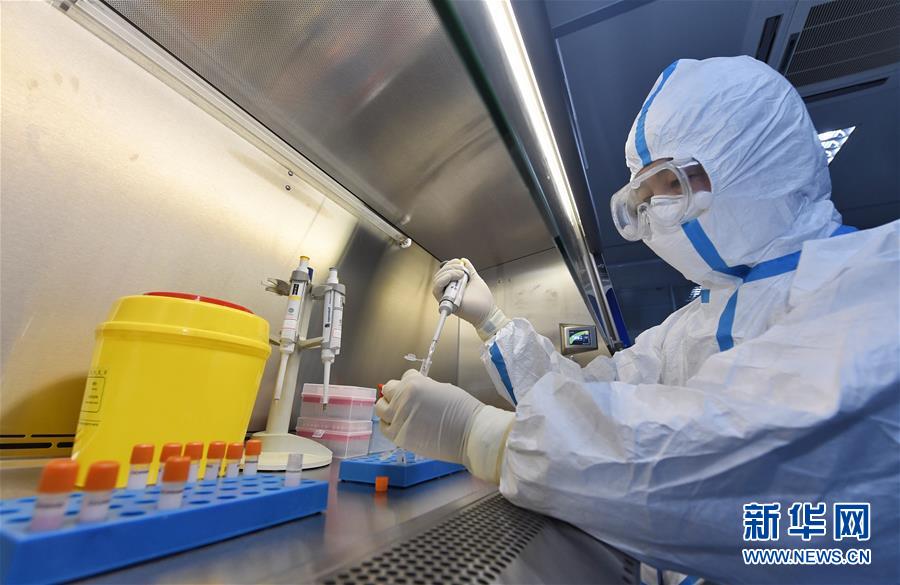 在四川国际旅行卫生保健中心(成都海关口岸门诊部)卫生检疫综合实验室,检测人员高国龙在实验室内开展检测工作(2月15日摄)。 新华社记者 刘坤 摄