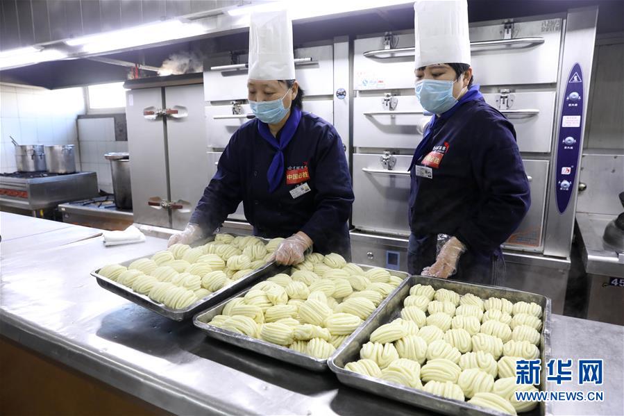 2月16日,在河北省石家庄市裕华区一家餐饮企业,工作人员为医护人员准备午餐主食。 新冠肺炎疫情发生后,石家庄市饭店烹饪行业协会号召餐饮企业积极投入到疫情防控行动中来。符合配送标准的8家爱心餐饮企业以“接力棒”形式为新冠肺炎定点医院——石家庄市第五医院的200余名医护人员免费提供一日三餐。此外,爱心企业还为支援武汉的医护人员家属提供免费套餐。截至目前,这些企业已为石家庄市第五医院抗“疫”一线医护人员免费送餐近6000份。 新华社发(许建园 摄)